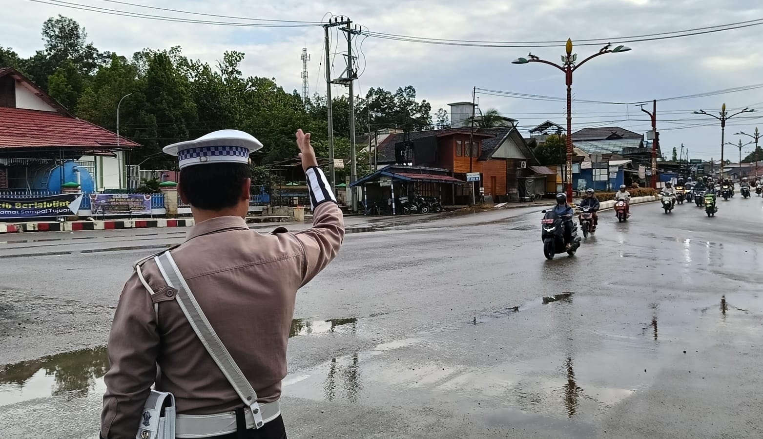 Selain pengaturan lalu lintas, personel juga memberikan edukasi langsung kepada pengguna jalan tentang pentingnya menggunakan helm, tidak menggunakan ponsel saat berkendara, serta menjaga etika berlalu lintas.