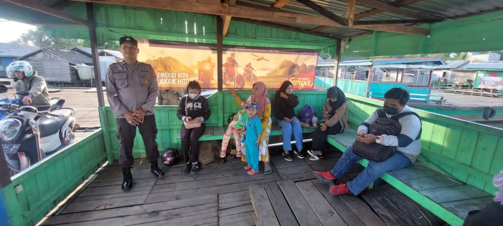 Ciptakan Rasa aman, Personil Polsek Kapuas Barat jajaran Polres Kapuas Polda Kalteng Aiptu Abu Jakpar, melaksanakan kegiatan patroli dan pengaturan di Pelabuhan feri penyebrangan Desa Saka Mangkahai Kec. Kapuas Barat Kab. Kapuas, Kalteng. Rabu (29/10/2025).