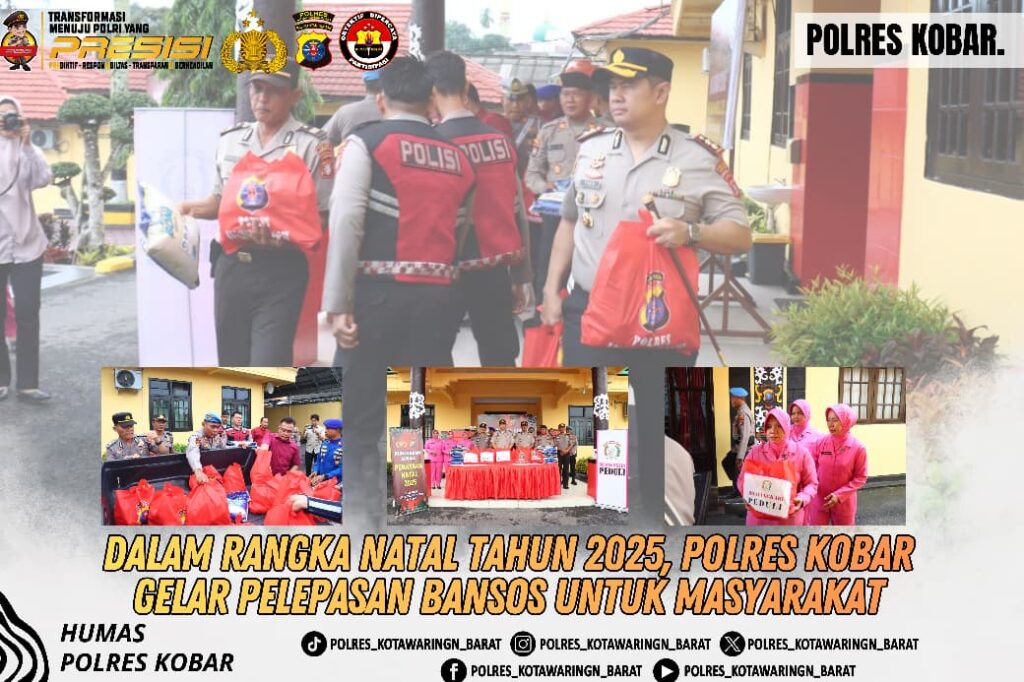 Polres Kobar – Polres Kotawaringin Barat menggelar kegiatan Pelepasan bansos dalam rangka Natal tahun 2025 yang bertempat di halamam Markas Komando Polres Kobar. Kamis (04/12/2025) pagi.