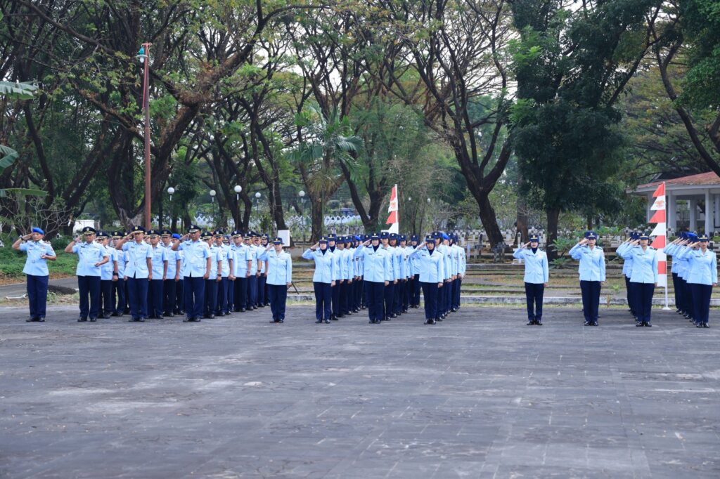 Makassar – Komandan Lanud Sultan Hasanuddin Marsma TNI Arifaini Nur Dwiyanto, M.Han., pimpin upacara ziarah dalam rangka Peringatan Ke-78 Hari Bakti TNI Angkatan Udara, di Taman Makam Pahlawan (TMP) Panaikang, Makassar, Senin (28/7/2025).