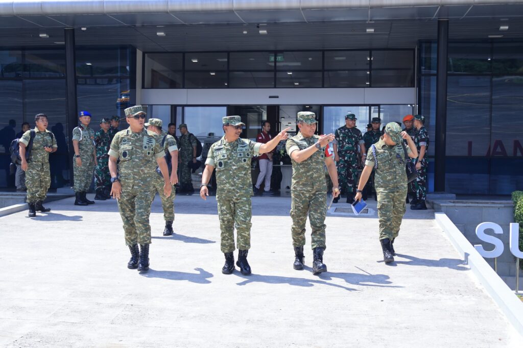 Makassar – Komandan Lanud Sultan Hasanuddin, Marsma TNI Arifaini Nur Dwiyanto, M.Han., menyambut kunjungan kerja Wakil Kepala Staf Angkatan Udara Marsekal Madya TNI Ir. Tedi Rizalihadi S, MM., beserta rombongan di Apron Base Ops Lanud Sultan Hasanuddin, Makassar, Rabu (5/11/2025).