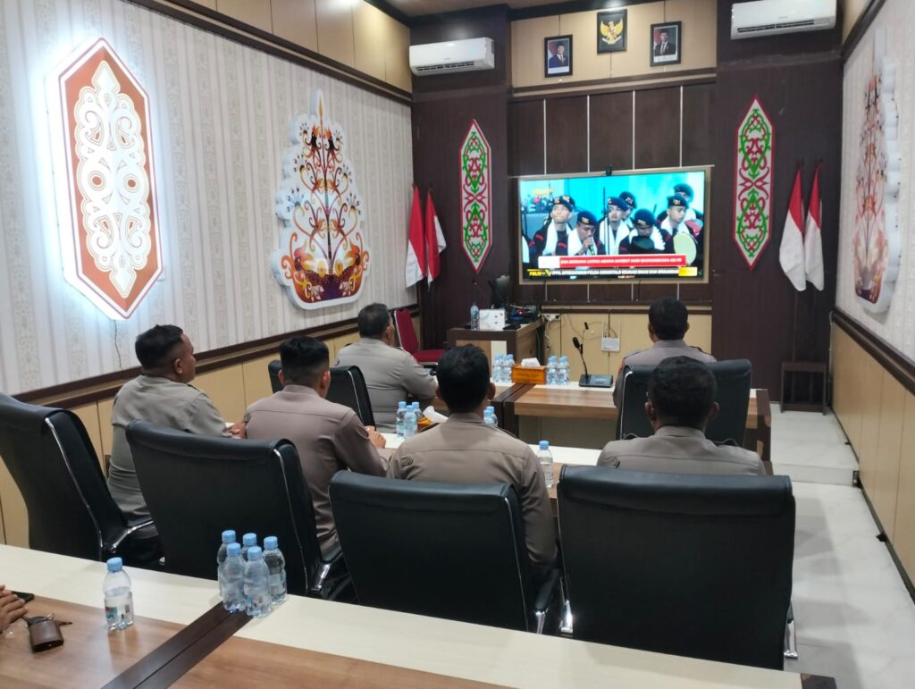Puruk Cahu – Dalam rangka memperingati HUT Bhayangkara Ke-79, Polres Murung Raya (Mura) menggelar kegiatan doa bersama lintas agama yang dilaksanakan secara virtual melalui Zoom Meeting bersama Mabes Polri. Kegiatan ini dimulai pada pukul 14.00 WIB dan berlangsung hingga selesai, bertempat diaula Mapolres Mura, Senin (30/6/2025).