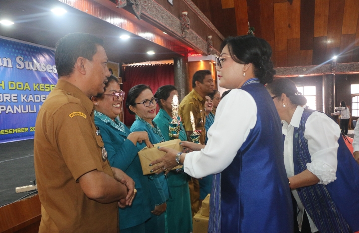 Pada kesempatan tersebut, Ny. Neny Angelina J.T.P Hutabarat juga menyampaikan apresiasi kepada Pendeta yang menyampaikan kotbah serta mendoakan para kader PKK agar diutus menjadi penggerak dalam mendampingi masyarakat terdampak bencana. Ia menegaskan bahwa PKK adalah organisasi pelayanan yang juga turut mendukung tugas para suami di pemerintahan agar tetap semangat melayani masyarakat.