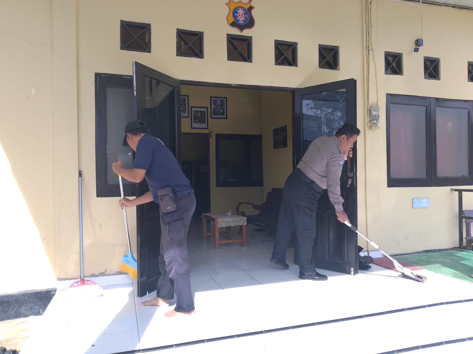Dalam kegiatan tersebut, sejumlah personel di antaranya Aiptu Sutrisno, Bripka Sugiarto, Bripka A. Setiawan, dan Bripka Arif Widodo tampak bahu-membahu membersihkan halaman, merapikan dokumen, hingga memastikan sanitasi di area Mapolsek terjaga dengan baik.