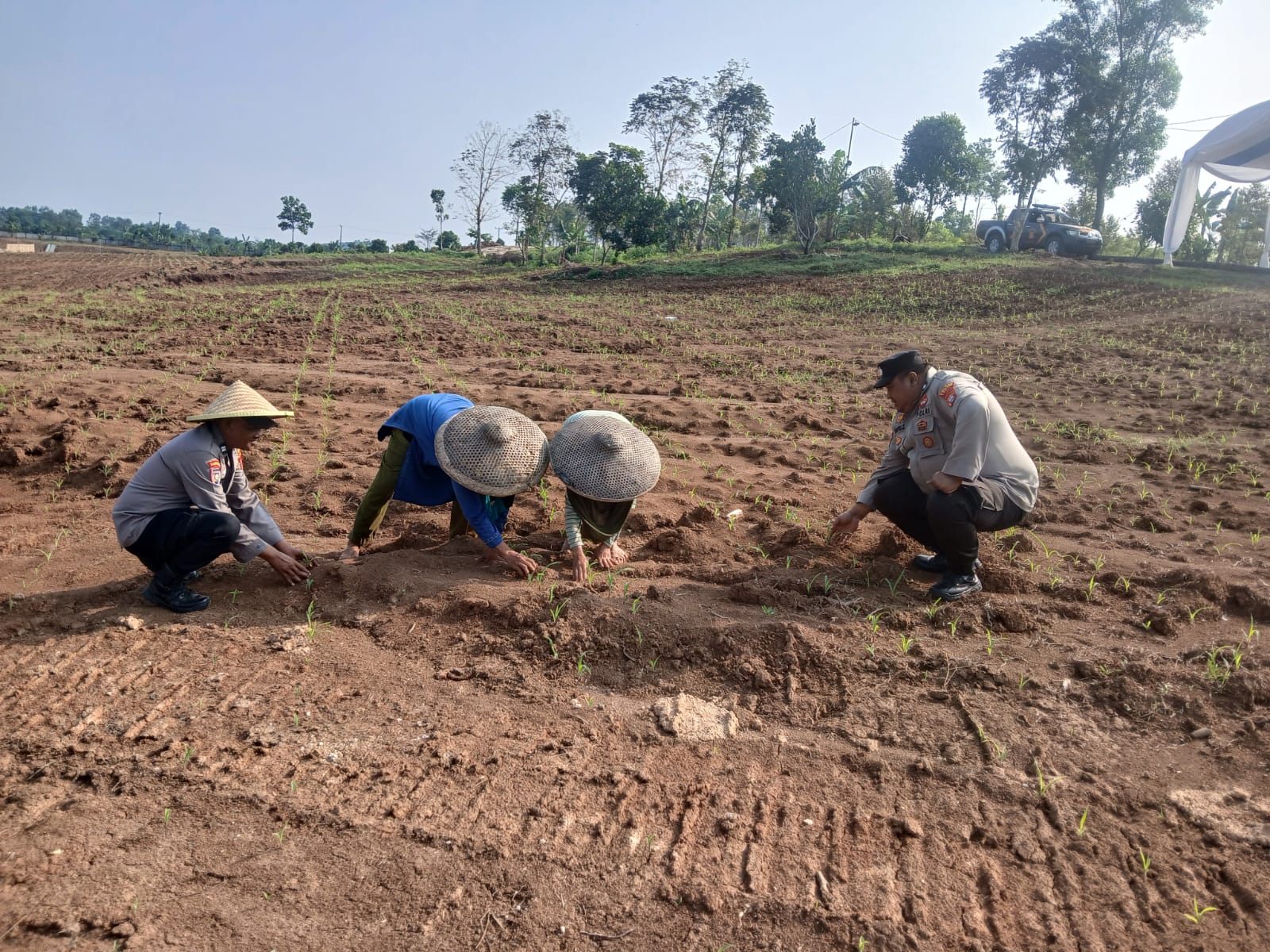 “Ya,pagi ini anggota Polsek Rangkasbitung kita perintahkan untuk membantu petani jagung menyemprotkan cairan pupuk organik di Kampung Pasir Konci,dalam rangka mendukung program ketahanan pangan di wilayah hukum Polsek Rangkasbitung Polres Lebak.