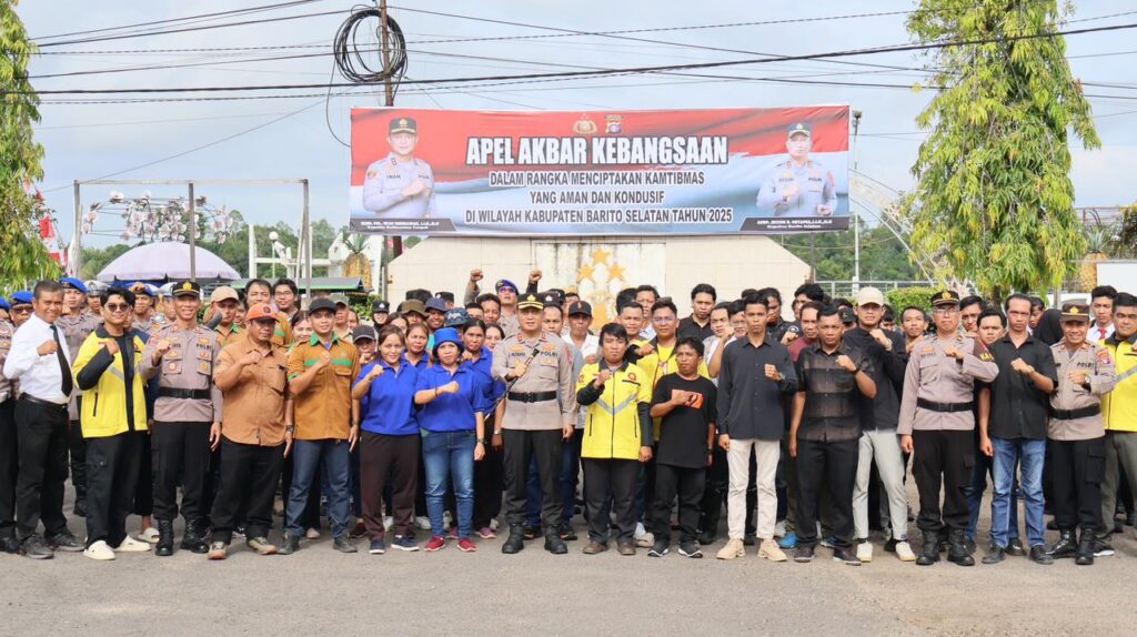Polres Barsel – Mempererat sinergi antara aparat Kepolisian, buruh dan ojek online serta kalangan pekerja, Polres Barito Selatan (Barsel), Polda Kalteng, menggelar Apel Akbar Kebangsaan bertempat di Mako Satsamapta Jalan Tugu, Selasa (4/11/2025) pagi.