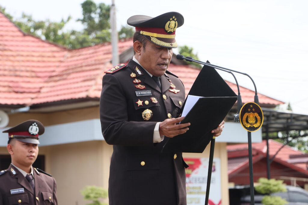 Kapolres Mura AKBP Franky M. Monathen, S.I.K. memimpin langsung upacara tersebut, menekankan pentingnya peran serta seluruh komponen bangsa dalam menjaga keutuhan Negara Kesatuan Republik Indonesia (NKRI).