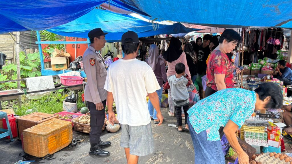 Pada hari Jumat, tanggal 31 Oktober 2025, personel Polsek Kapuas Barat melaksanakan kegiatan patroli pasar mingguan di Pasar Kelurahan Mandomai, Kecamatan Kapuas Barat, Kabupaten Kapuas, Provinsi Kalimantan Tengah. Kegiatan dimulai sekitar pukul 08.30 WIB hingga selesai dengan melibatkan anggota piket Polsek Kapuas Barat.