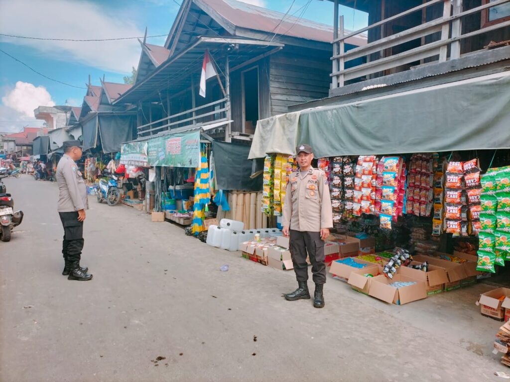 Giat Personil Polsek Kapuas tengah Patroli ke pasar harian Pujon desa Pujon.