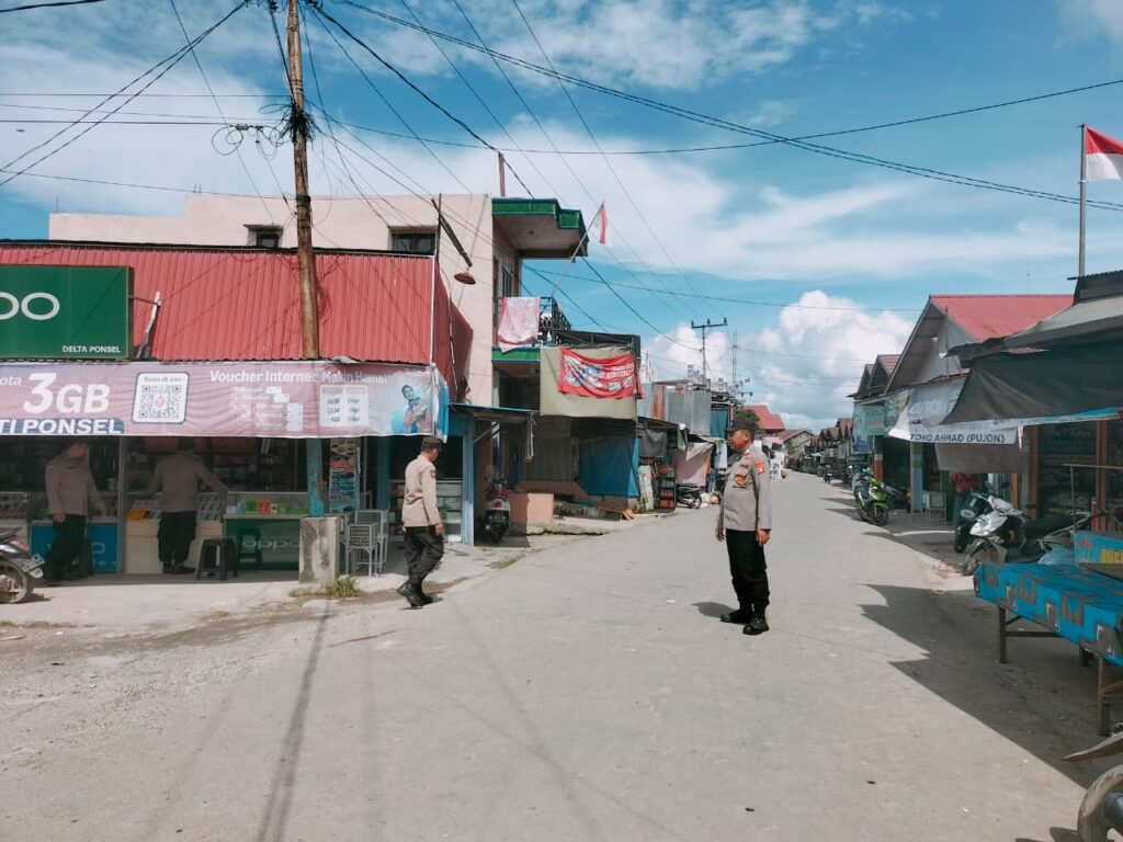 Giat Personil Polsek Kapuas tengah Patroli ke pasar harian Pujon desa Pujon.