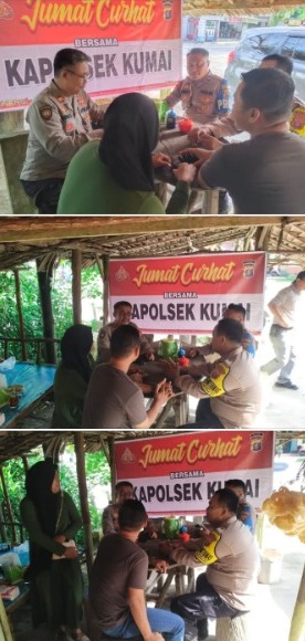 Dalam suasana obrolan santai, Kanit Binmas menyampaikan bahwa, kegiatan Jumat Curhat dilaksanakan untuk mendengar secara langsung curhatan dari masyarakat mengenai saran, kritikan, masukan serta pengaduan dari masyarakat terkait dengan pelayanan Kepolisian khususnya Polsek Kumai.