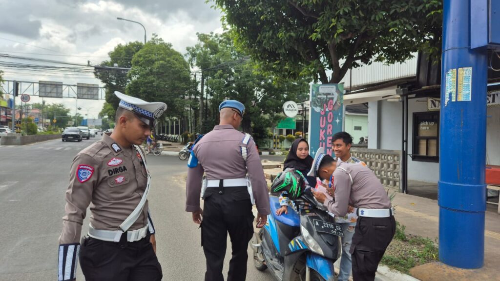 Serang – analisnews.co.id Pada hari kedua Operasi Zebra Maung 2025, personel Ditlantas Polda Banten melaksanakan kegiatan penegakan dan edukasi keselamatan berlalu lintas di tiga titik rawan pelanggaran, yaitu Traffic Light Ciceri, Traffic Light Sumur Pecung, dan Traffic Light Pisang Mas. Kegiatan berlangsung sejak pagi dengan fokus pada pengaturan lalu lintas, pemeriksaan kendaraan, hingga penindakan terhadap pelanggaran yang berpotensi menyebabkan kecelakaan.