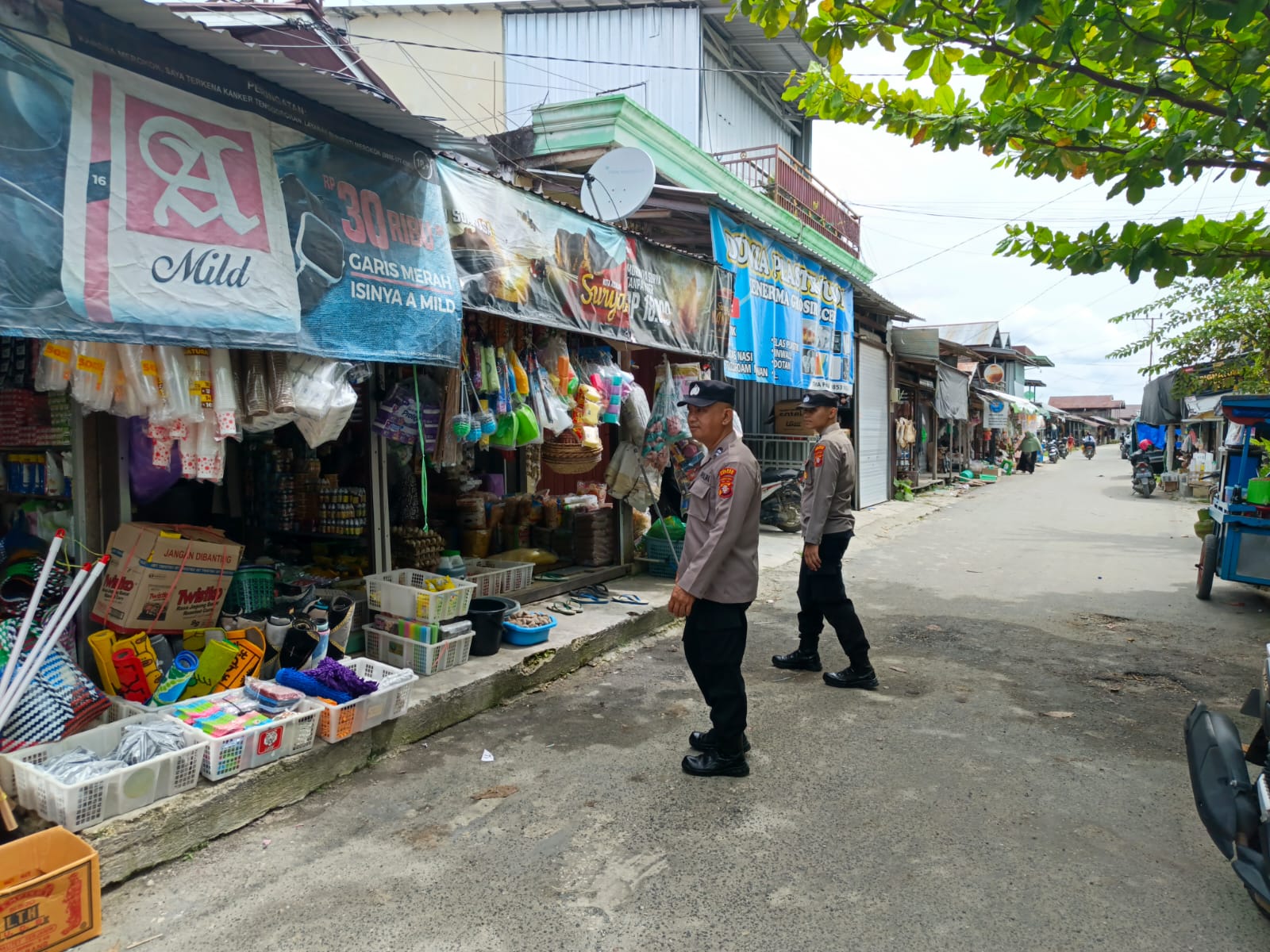 Piket polsek lakuakan rutin Patroli ke pasar harian Pujon desa Pujon.