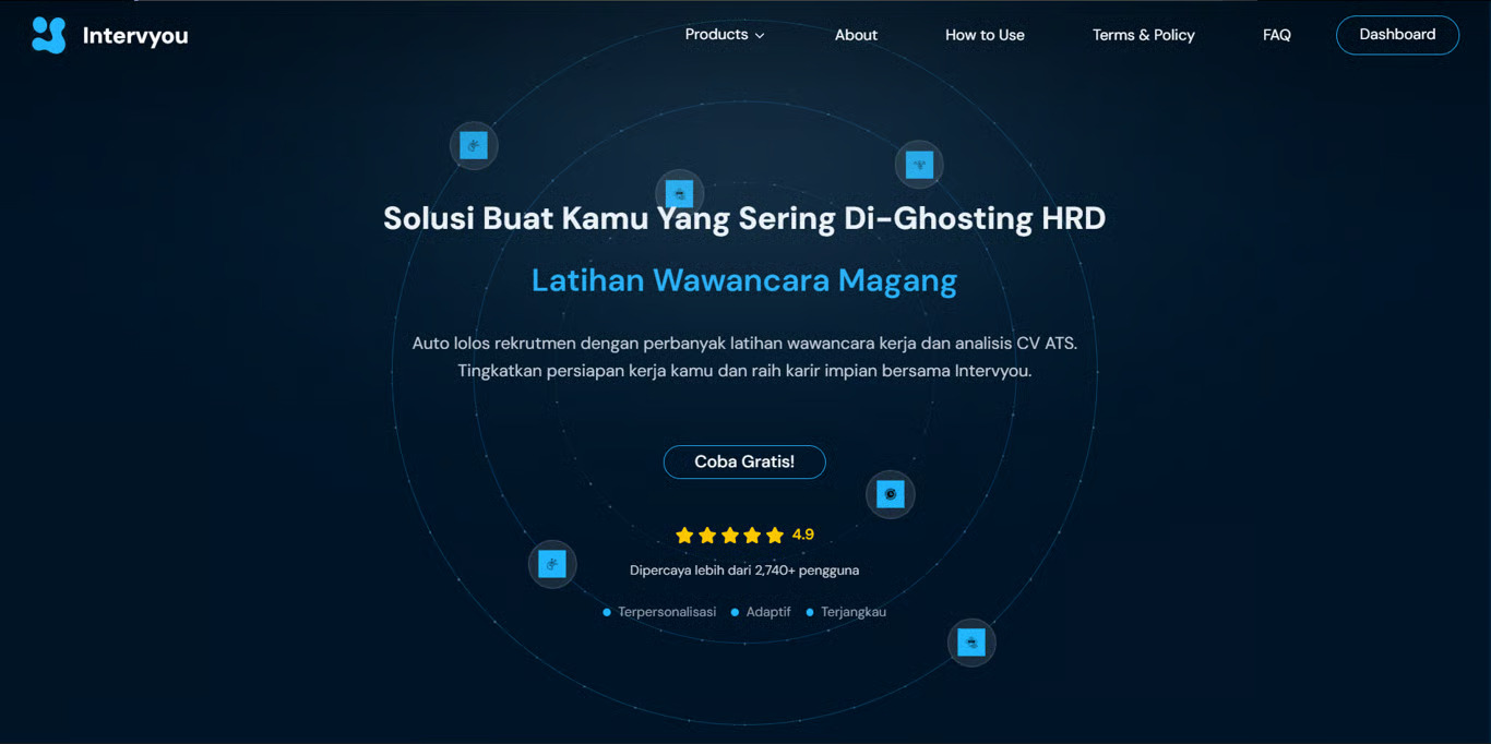 Intervyou sendiri menerapkan model berbasis token yang efisien, memungkinkan pengguna mengakses optimasi CV hingga simulasi wawancara secara on-demand tanpa beban biaya langganan bulanan.
