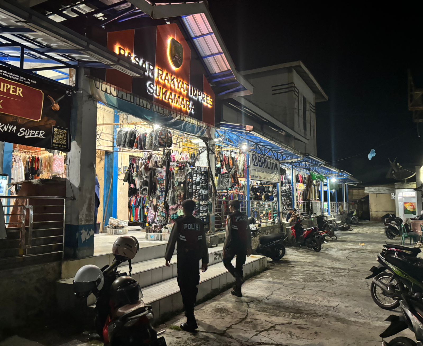 SUKAMARA – Guna mengantisipasi gangguan kamtibmas di pusat ekonomi rakyat, Sat Samapta Polres Sukamara menggelar patroli malam hari di kawasan Pasar Inpress Sukamara. Patroli ini dilakukan untuk memastikan area pasar tetap aman dari tindakan pencurian maupun gangguan ketertiban lainnya yang mungkin terjadi saat aktivitas perdagangan sedang tidak berlangsung, Senin (20/04/2026).