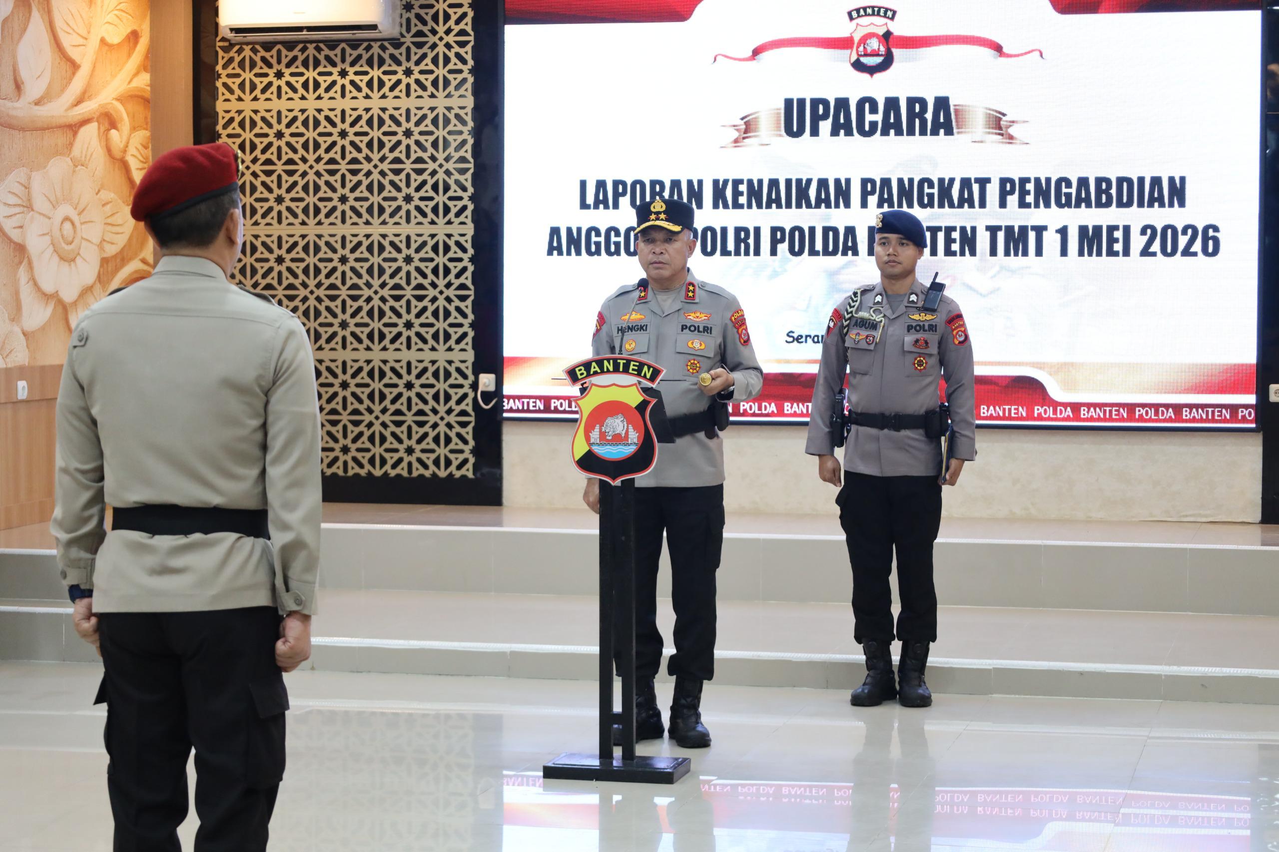 Serang, Analismews.co.id  — Kapolda Banten Irjen Pol. Hengki memimpin langsung upacara kenaikan pangkat pengabdian dari AKBP ke Kombes Pol Terhitung Mulai Tanggal (TMT) 1 Mei 2026. Kegiatan tersebut dilaksanakan di Aula Ditreskrimum Polda Banten pada Kamis (30/04) pukul 10.00 WIB.