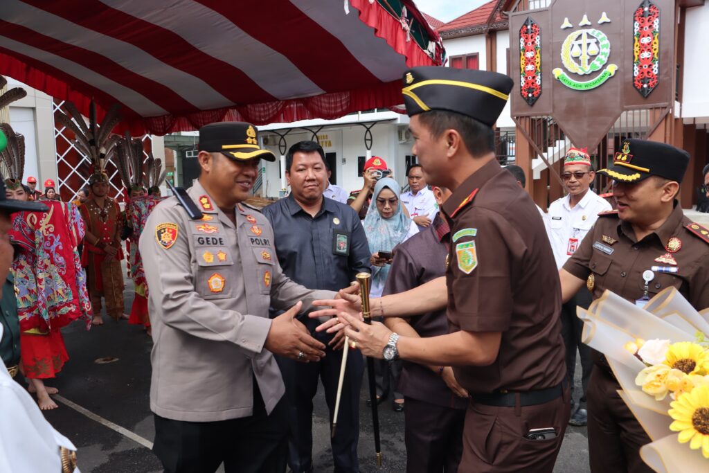 Kapolres Kapuas AKBP Gede Eka Yudharma, S.I.K., M.A.P. menghadiri kegiatan Upacara Adat Potong Pantan dalam rangka penyambutan Kepala Kejaksaan Negeri (Kajari) Kapuas yang baru, Bapak Rade Satya Parsaoran, S.H., M.H, pada Rabu (29/10/2025) pagi, bertempat di halaman Kantor Kejaksaan Negeri Kapuas, Jalan A. Yani, Kuala Kapuas.