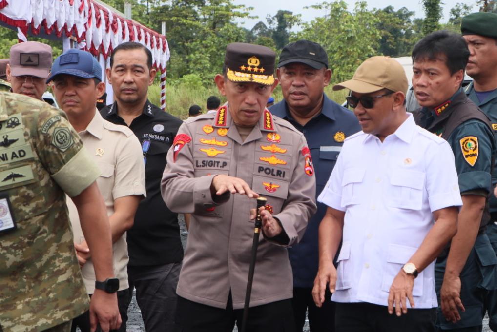 Puruk Cahu – Kapolres Murung Raya (Mura) AKBP Franky M. Monathen, S.I.K bersama Forkopimda menyambut Kapolri dan Tim Pengarah Satuan Tugas Penertiban Kawasan Hutan (Satgas PKH) meninjau langsung lokasi penertiban tambang milik PT. Asmin Koalindo Tuhup (AKT) di Kab. Murung Raya (Mura), Prov. Kalimantan Tengah, Selasa (7/4/2026).