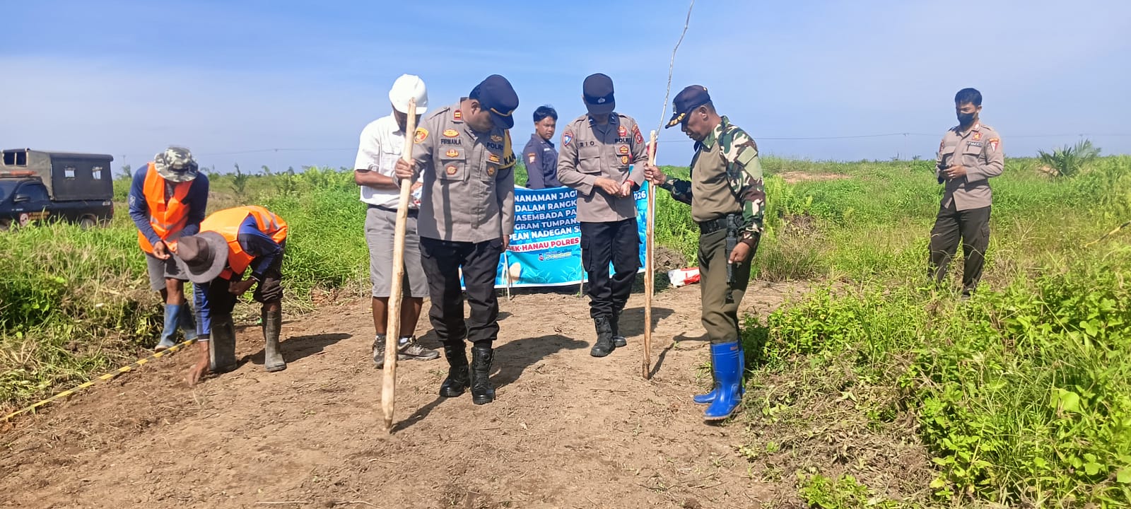 “Kami hadir untuk mendukung Program Ketahanan Pangan melalui penanaman jagung tumpang sari. Sinergi antara Polri, perusahaan, dan masyarakat sangat penting dalam mewujudkan ketahanan pangan di wilayah Kecamatan Hanau,” ujar Kapolsek Hanau.