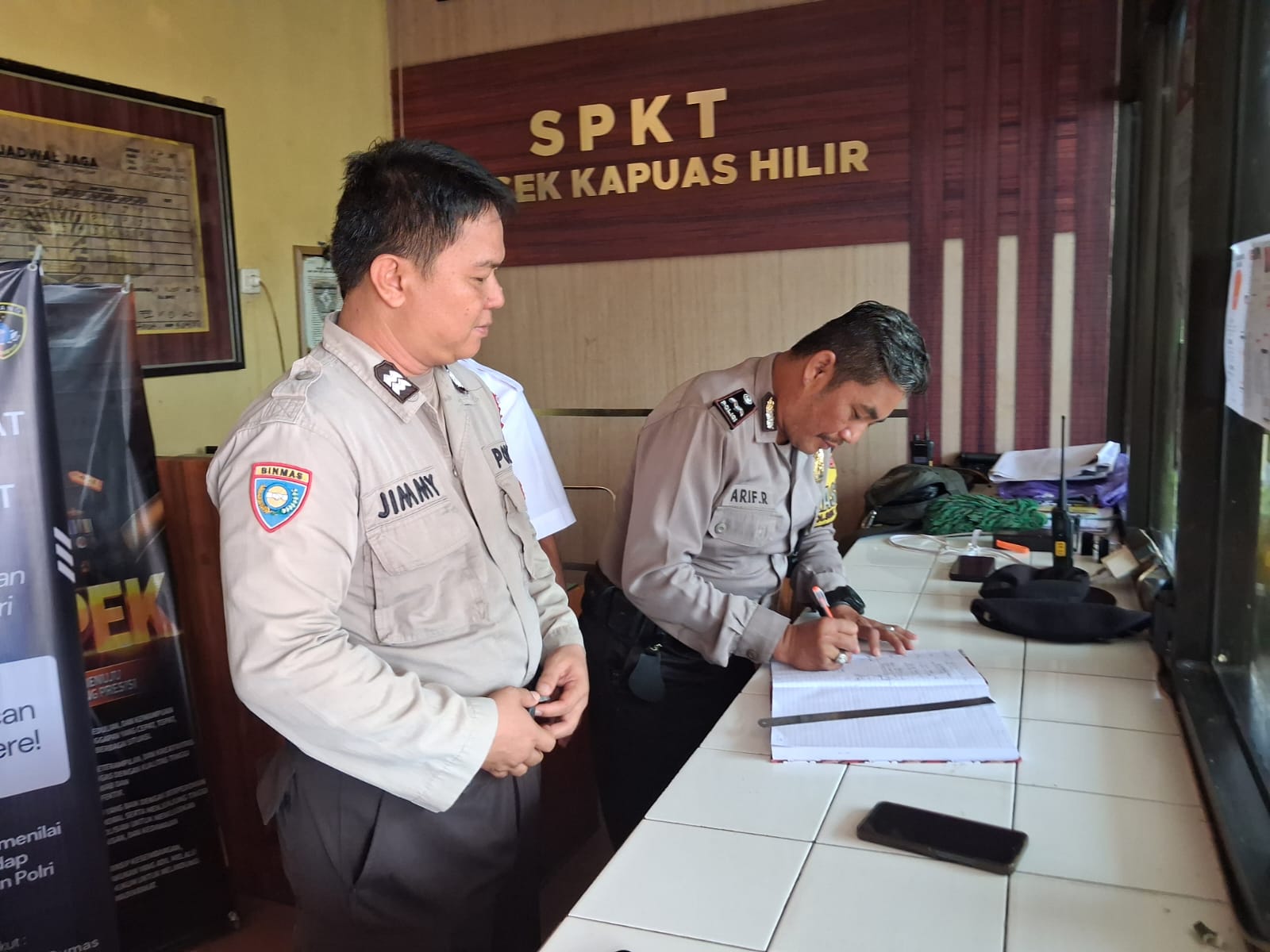 Polsek Kapuas Hilir Polres Kapuas Jajaran Polda Kalteng – Demi pelaksanaan tugas yang maksimal Personil Polsek Kapuas Hilir melaksanakan kegiatan Serah Terima Piket Mako di Polsek Kapuas Hilir jalan Trans Kalimantan RT 6 Kel.Barimba Kecamatan Kapuas Hilir Kabupaten Kapuas Provinsi Kalimantan Tengah. ( Selasa, 13 Januari 2026)