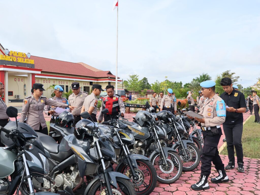 Polres Barsel – Polres Barito Selatan (Barsel), Polda Kalteng, menggelar pengecekan kendaraan bermotor dinas roda dua maupun roda empat di halaman Mako Polres Jalan Soekarno Hatta, Desa Sababilah, Kamis (11/12/2023) pagi.