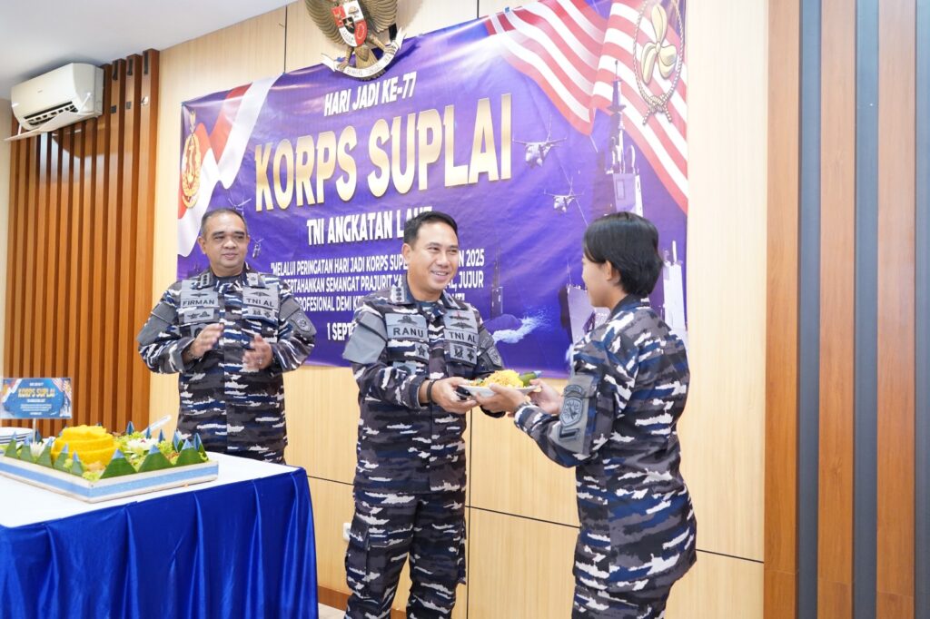 Komandan Komando Daerah TNI Angkatan Laut (Dankodaeral) III, Laksamana Muda TNI Uki Prasetia, S.T., M.M. diwakili oleh Wadan Kodaeral III Kolonel Laut (P) Ranu Samiaji, S.T., M.H., M.Tr.Oplsa. menghadiri syukuran hari ulang tahun (HUT) ke-77 Korps Suplai TNI Angkatan Laut tahun 2025 di gedung rapat Mako Kodaeral III, Jakarta Utara, Senin (1/9).