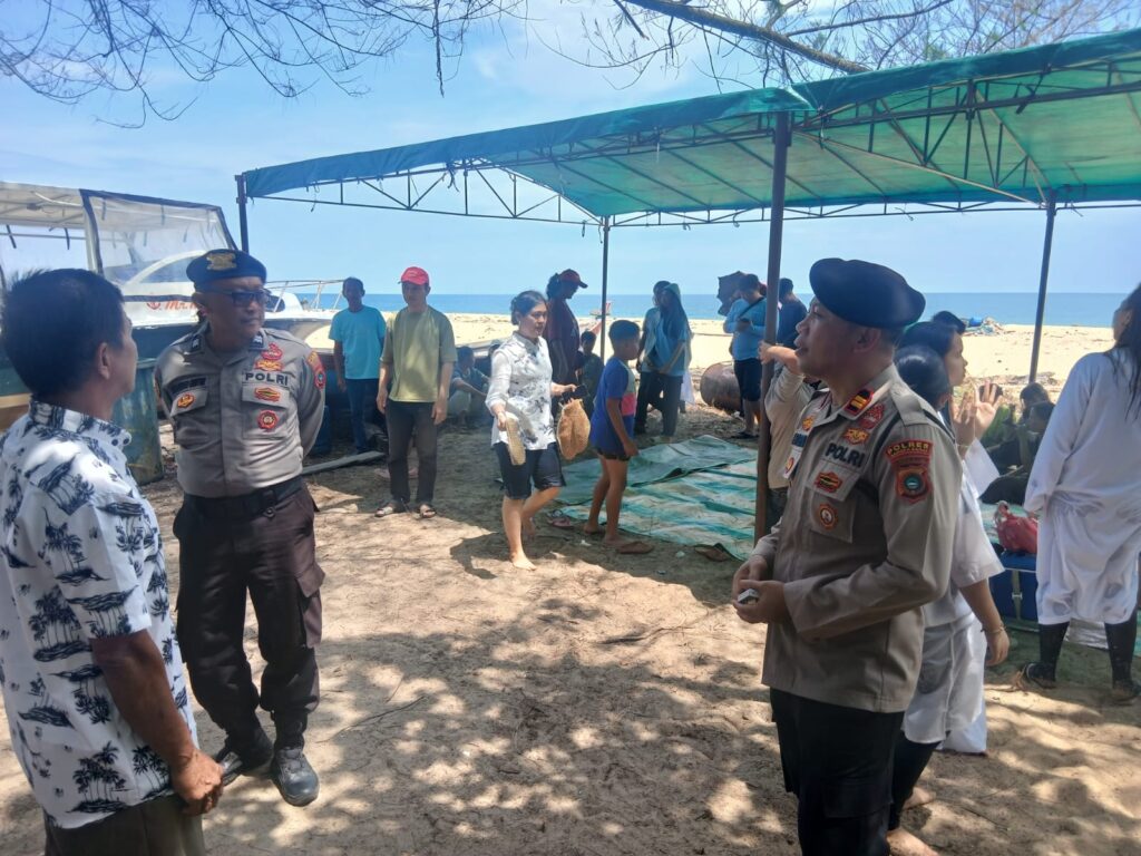 Selain itu, personel juga memberikan imbauan kepada masyarakat agar tetap berhati-hati saat beraktivitas di pantai, terutama terkait keselamatan saat berenang dan menjaga barang bawaan.