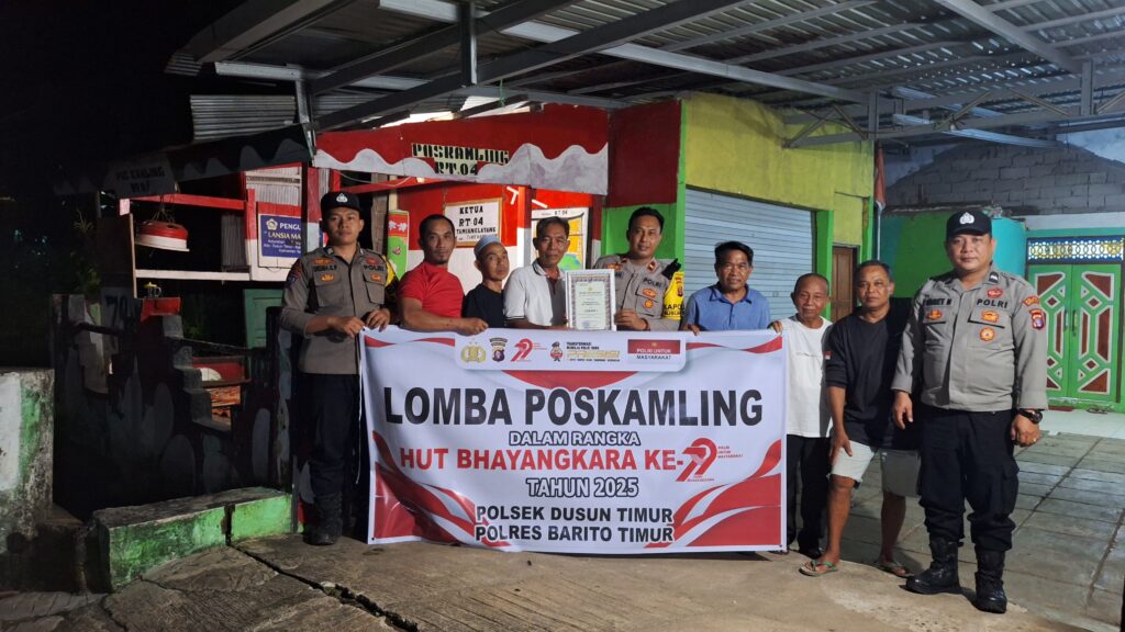 Tamiang Layang – Dalam rangka memeriahkan Hari Ulang Tahun (HUT) Bhayangkara ke-79 Tahun 2025, Polsek Dusun Timur, Polres Barito Timur, Polda Kalimantan Tengah, melaksanakan kegiatan Penilaian Lomba Pos Kamling yang digelar pada Minggu malam, 22 Juni 2025, bertempat di wilayah Kelurahan Tamiang Layang.