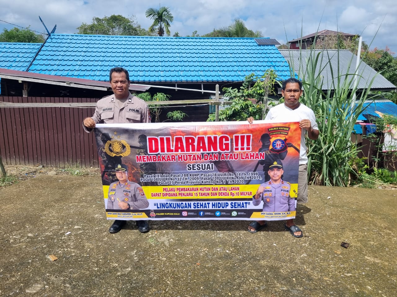 Dalam upaya mencegah terjadinya kebakaran hutan dan lahan (Karhutla), personel Polsek Kapuas Hulu Polres Kapuas Polda Kalteng terus gencar memberikan imbauan kepada masyarakat agar tidak melakukan aktivitas pembakaran lahan saat membuka kebun atau membersihkan lahan pertanian.
