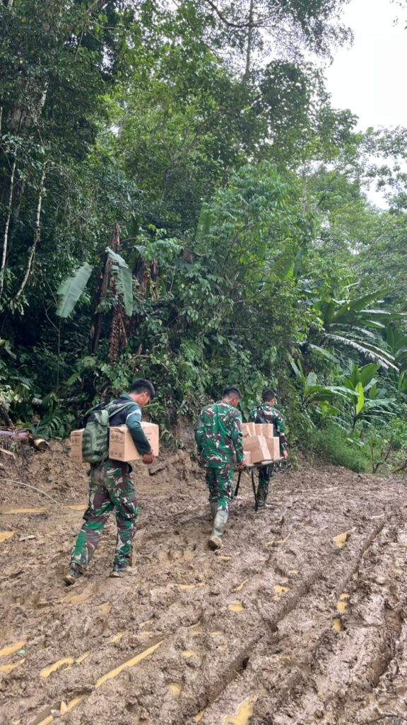 Aceh Tengah – Dalam rangka membantu pemenuhan kebutuhan kesehatan masyarakat terdampak banjir dan tanah longsor, personel kesehatan Brigif TP 90/Yudha Giri Dhanu bersama Yonif TP 854/Dharma Kersaka Kodam Iskandar Muda melaksanakan pendistribusian obat-obatan ke wilayah terisolir di Kabupaten Aceh Tengah, Senin (8/12/2025). Distribusi dilakukan dengan menyusuri medan berat menuju Desa Pameu dan Desa Lut Jaya, Kecamatan Rusip Antara.
