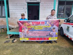 “Personel Polsek Kapuas Hulu membentangkan pamflet bertuliskan stop illegal mining serta sanksi pidana RI nomor 3 tahun 2020 tentang pertambangan mineral dan batubara, undang-undang RI nomor 7 tahun 2014 tentang perdagangan bahan kimia/sianida, dan undang-undang RI nomor 9 tahun 2008 tentang penggunaan bahan kimia sebagai senjata kimia dengan ancaman pidana penjara selama 5 tahun dan denda 100 milyar rupiah serta memberikan himbauan bersama-sama dalam menanggulangi illegal mining apabila mendengar, melihat suatu kegiatan penambangan iIlegal agar segera melaporkannya ke Polsek Kapuas Hulu atau bisa melaporkannya kepada Bhabinkamtibmas atau Polmas untuk segera di tindak lanjuti”. tegas Kapolsek. (@13)