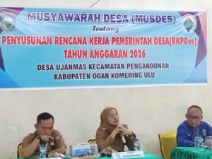 Analisnews Baturaja Musyawarah Desa terkait Penyusunan Rencana Kerja Pemerintah Desa (RKPDes) Tahun Anggaran 2026 dan Daftar Usulan Rencana kerja Pemerintah Desa (DU-RKPDes) Tahun Anggaran 2026 Desa Ujan Mas Kec. Pengandonan Kab.OKU, senin (21/07/2025) pukul 09.30 wib, di gedung serba guna desa ujan mas.
