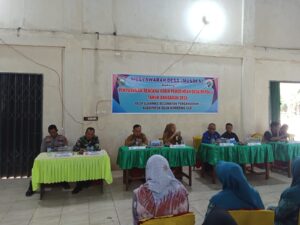 Kasi perencanaan Desa Arif Fatriansyah, S, Dinas PMD, dalam sambutannya menjelaskan bahwa dana desa Pengunaan nya terbagi atas, BLT, ketahanan pangan, operasial desa, Padat karya tunai, desa digital, iklim, ujar Arif.