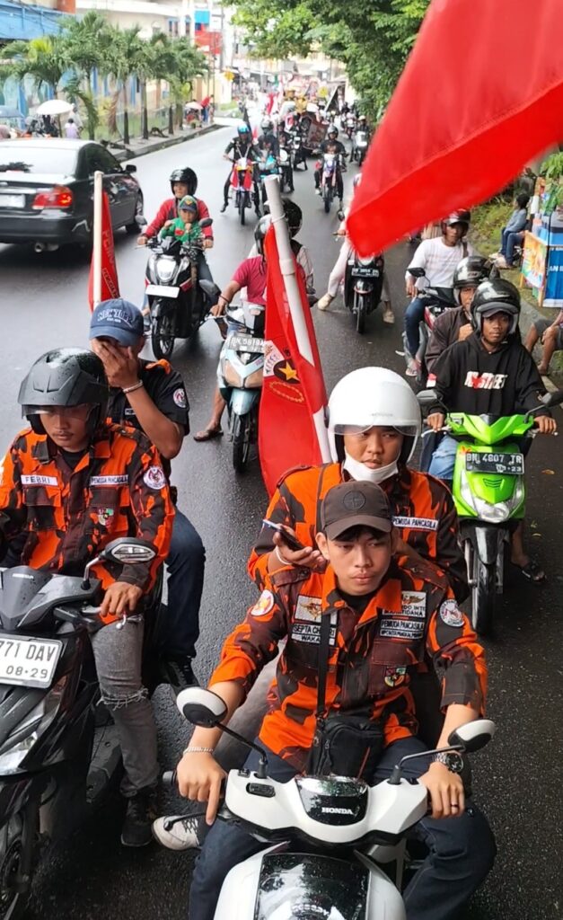Dalam pawai kendaraan selain mobil puso yang bertuliskan baleho ORMAS PEMUDA PANCASILA ada juga puluhan Sepeda Motor dari anggota ormas pemuda Pancasilah Kota Pangkal Pinang, menyambut HUT RI ke-80.