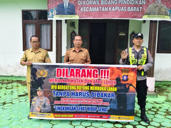 KAPUAS BARAT – Memasuki musim yang rentan terhadap kebakaran lahan, personel Polsek Kapuas Barat melaksanakan sosialisasi intensif terkait pencegahan
