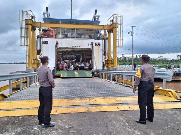 Pulang Pisau – Personel Polsek Kahayan Kuala melakukan pengamanan ketat terhadap kedatangan Kapal Motor
