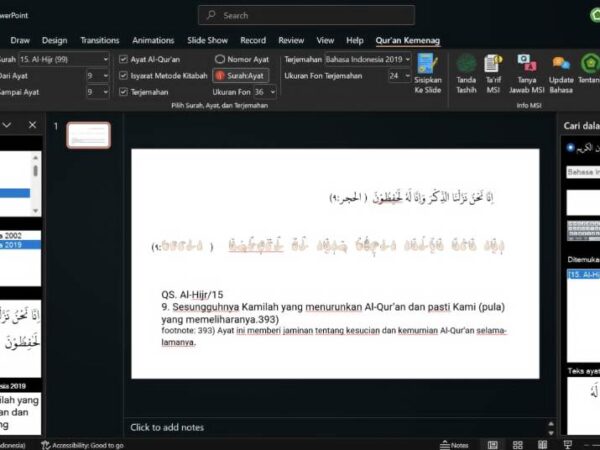 Analisnews.co.id | Kementerian Agama Republik Indonesia melalui Lajnah Pentashihan Mushaf Al-Qur’an (LPMQ) meluncurkan aplikasi Qur’an Kemenag Add-ins untuk Microsoft