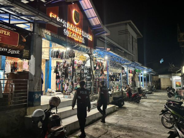 SUKAMARA – Guna mengantisipasi gangguan kamtibmas di pusat ekonomi rakyat, Sat Samapta Polres Sukamara menggelar patroli malam hari di