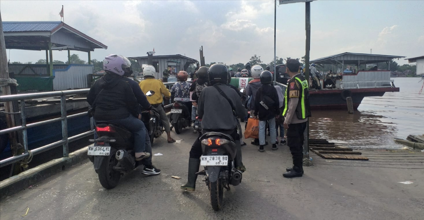 Pastikan Keselamatan Penyeberangan, Polsek Kapuas Barat Sambangi Dermaga Feri Saka Mangkahai – Sei Pitung