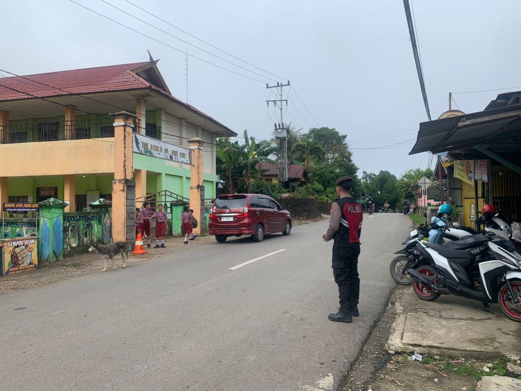 Puruk Cahu – Peduli Keselamatan pelajar, Personil Satsamapta Polres Murung Raya (Mura) jajaran Polda Kalteng, melaksanakan pengaturan arus lalu lintas pagi hari sambil membantu anak sekolah menyeberang jalan, Kamis (6/11/2025) pagi.