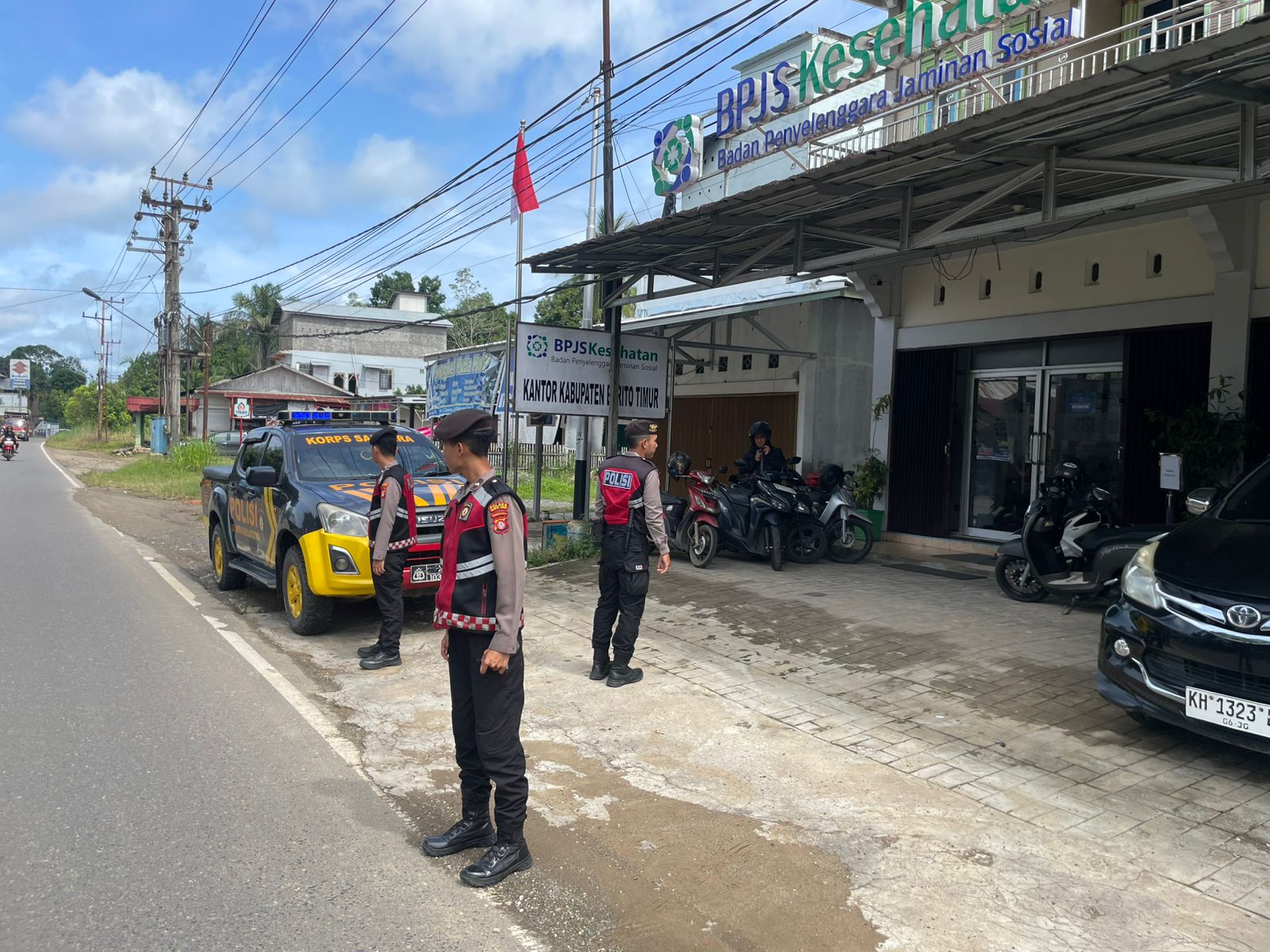 Patroli menyasar sejumlah lokasi strategis dan pusat aktivitas masyarakat, di antaranya lingkungan fasilitas pendidikan SMK Jajaka di Jalan Munsit, Kelurahan Tamiang Layang, Kecamatan Dusun Timur. Selain itu, patroli juga dilakukan di lingkungan Kantor BPJS Kesehatan Kabupaten Barito Timur di Jalan A. Yani Km. 02 serta Kantor Badan Pusat Statistik Kabupaten Barito Timur di Jalan Manunggal, Kelurahan Tamiang Layang. Dari hasil pemantauan di seluruh lokasi tersebut, situasi terpantau aman, kondusif, dan terkendali.