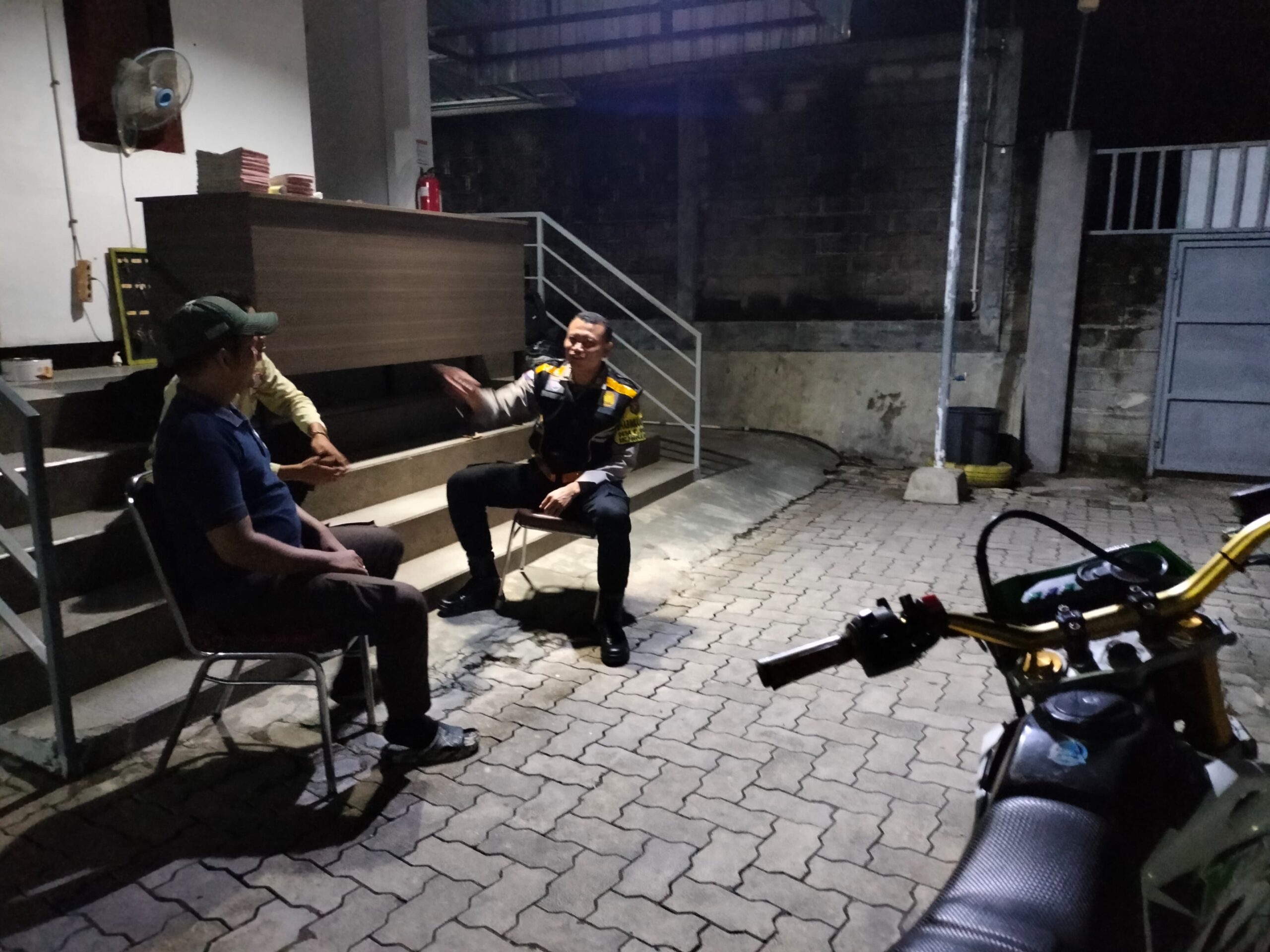 Patroli Malam, Bhabinkamtibmas Purbasari Sambangi Pos Security PT. SKK Cek CCTV & Beri Motivasi Satpam