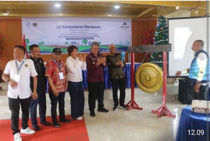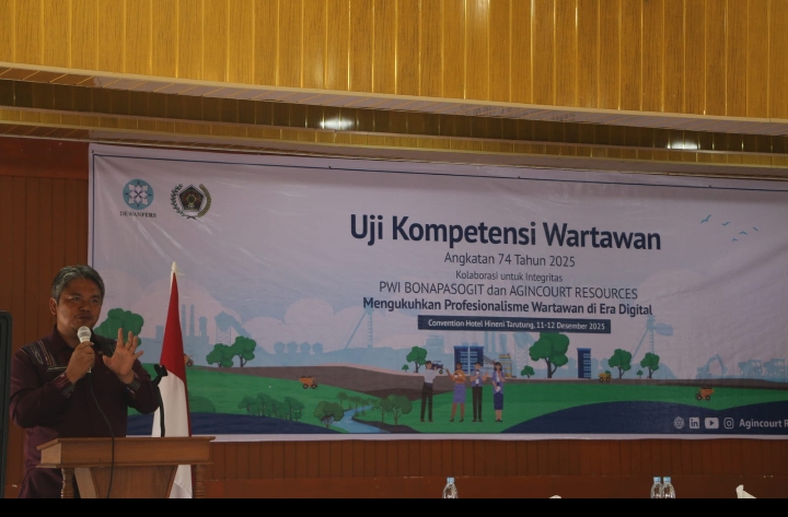Pemerintah Kabupaten Tapanuli Utara menyampaikan apresiasi atas terselenggaranya Uji Kompetensi Wartawan (UKW) Angkatan 74 Tahun 2025 yang digelar oleh PWI Bonapasogit bekerja sama dengan PT Agincourt Resources, bertempat di Convention Hall Hotel Hineni, Tarutung (Kamis, 11 Desember 2025).