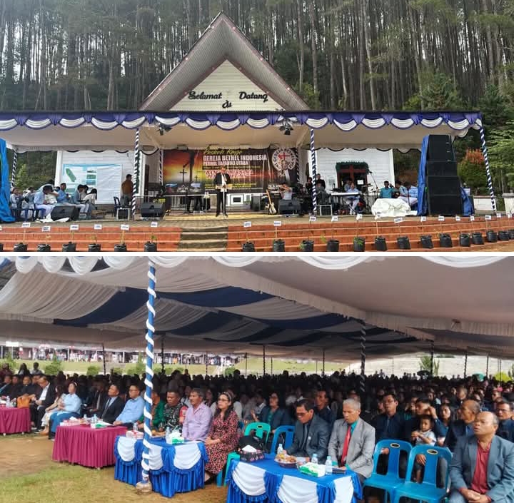 Pemerintah Kabupaten Tapanuli Utara, diwakili beberapa pimpinan perangkat daerah bersama unsur Forum Koordinasi Pimpinan Daerah (Forkopimda) menghadiri Kebaktian Kebangunan Rohani (KKR) Paskah Bersama Gereja Bethel Indonesia (GBI) Wilayah Tapanuli Utara yang dilaksanakan di kawasan Salib Kasih, Tarutung, Minggu (19/04/2026).