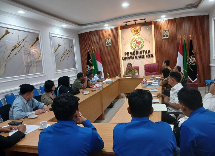 Wakil Bupati Tapanuli Utara Dr. Deni Lumbantoruan, M.Eng didampingi Kepala Dinas Ketenagakerjaan Josua JE Hutabarat melaksanakan pembahasan terkait percepatan Program Kredit Usaha Rakyat (KUR) untuk pekerja migran bersama 4 (empat) Lembaga Pelatihan Kerja (LPK) Swasta, Perseroda dan Petani Milenial, bertempat di Ruang Rapat Mini Kantor Bupati Taput, Tarutung (Senin/03 Nopember 2025).