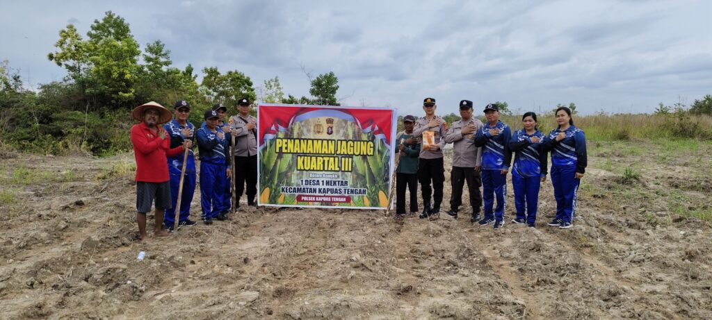 Polsek Kapuas Tengah Polres Kapuas Jajaran Polda Kalteng. Dalam rangka mendukung ketahanan pangan nasional dan pemberdayaan masyarakat, Polsek Kapuas Tengah Polres Kapuas melaksanakan kegiatan Penanaman Jagung 1 Desa 1 Hektar yang berlangsung di lahan warga di Desa Masaran Kec. Kapuas Tengah Kab. Kapuas Prov. Kalteng. Jum’at (22/8/25). Pukul 08.00 WIB.