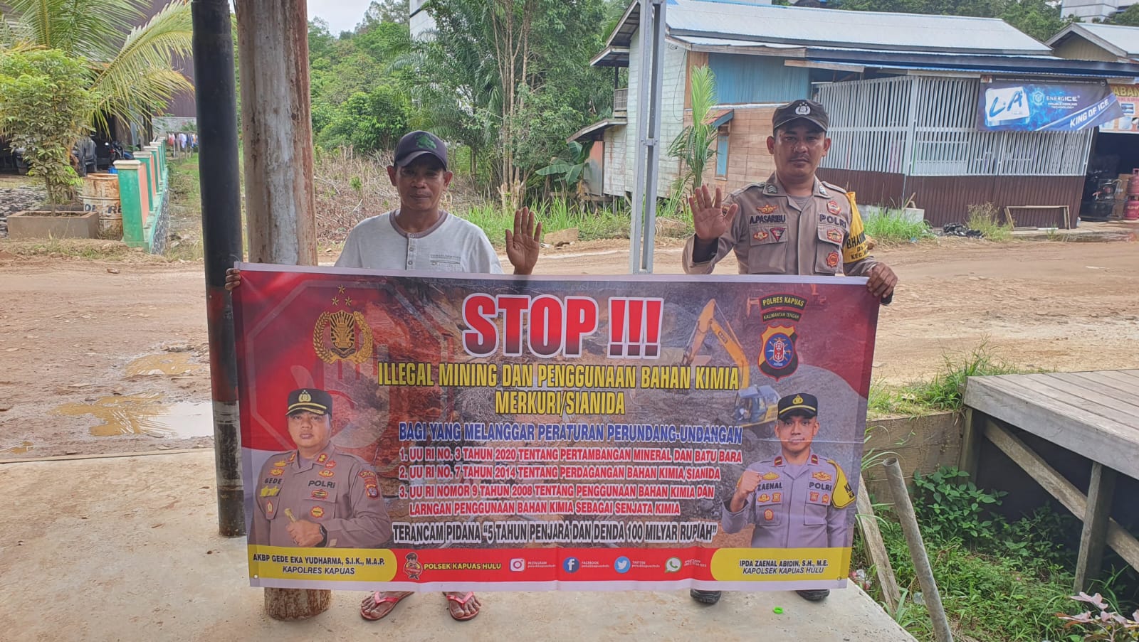“Sanksi hukum dan denda sebagaimana tertuang pada undang-undang RI nomor 3 tahun 2020 tentang pertambangan mineral dan batubara, undang-undang RI nomor 7 tahun 2014 tentang perdagangan bahan kimia/sianida, dan undang-undang RI nomor 9 tahun 2008 tentang penggunaan bahan kimia sebagai senjata kimia dengan ancaman pidana penjara selama 5 tahun dan denda 100 milyar rupiah.” tegasnya.