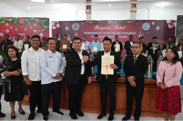 Perayaan Natal Pemerintah Kabupaten Humbang Hasundutan bersama masyarakat berlangsung sederhana namun penuh hikmat. Kegiatan ini dilaksanakan di Aula Hutamas, Perkantoran Tano Tubu, Doloksanggul, Rabu 10 Desember 2025.