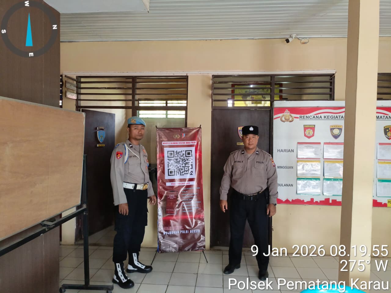 Barito Timur – Polsek Pematang Karau, Polres Barito Timur, melaksanakan kegiatan pemasangan Banner Barcode Pengaduan dan sosialisasi Whistle Blowing System (WBS) Polri sebagai upaya memperkuat pengawasan internal serta meningkatkan integritas dan profesionalisme anggota Polri.
