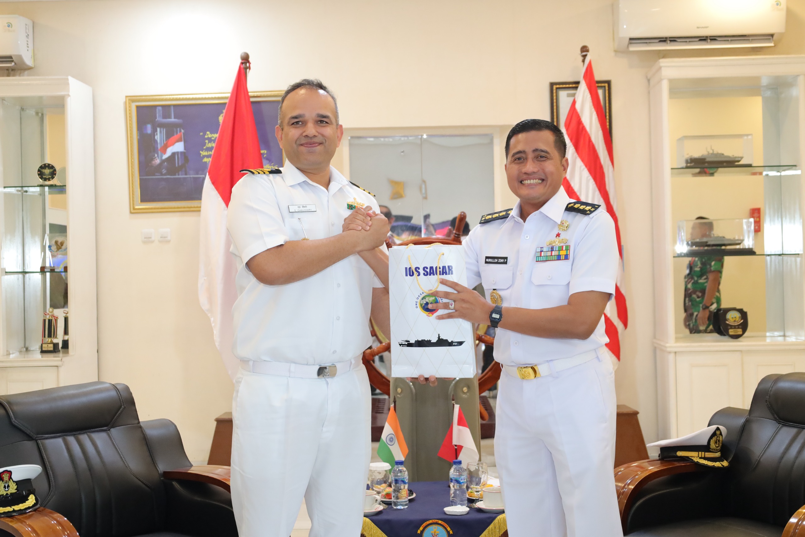 Komandan Kodaeral III, Laksamana Muda TNI Uki Prasetia, S.T., M.M. yang diwakili oleh Asisten Perencanaan Dankodaeral, Kolonel Laut (P) Nurulloh Zemi Prasetio, M.S.C. didampingi Kasatker Kodaeral menerima CC yang dipimpin oleh Atase Pertahanan India, Captain (N) Shiv Kumar yang didampingi Komandan INS Sunayna, Commander Siddarth Chaudary di lobby utama Makodaeral III, Selasa (21 April 2026).
